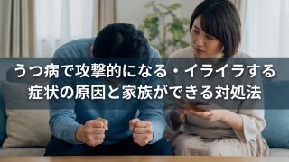 うつ病になると、人によっては攻撃的な言動や強いイライラが症状として現れることがあります。攻撃的になる原因と自分自身だけではなく家族ができる対処法を解説しています。